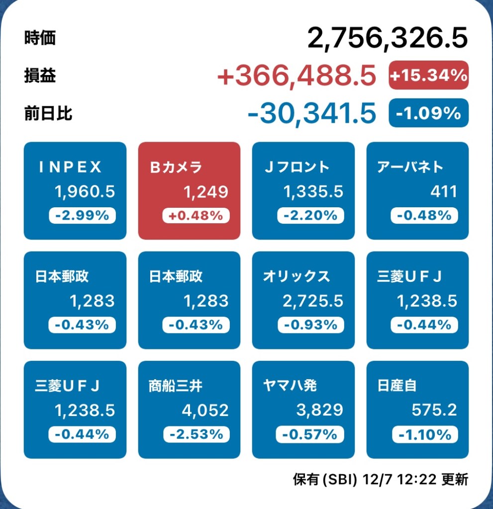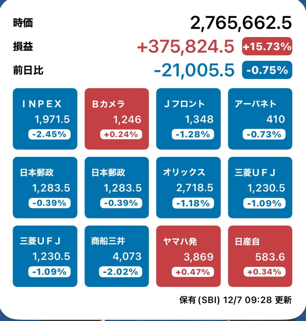 なぜかというと、年明け1→3の分割があることが判明したから!最低でも34株あれば、年明け単元化できます♪それ以上あれば、月末に上がるかなーと皮算用。