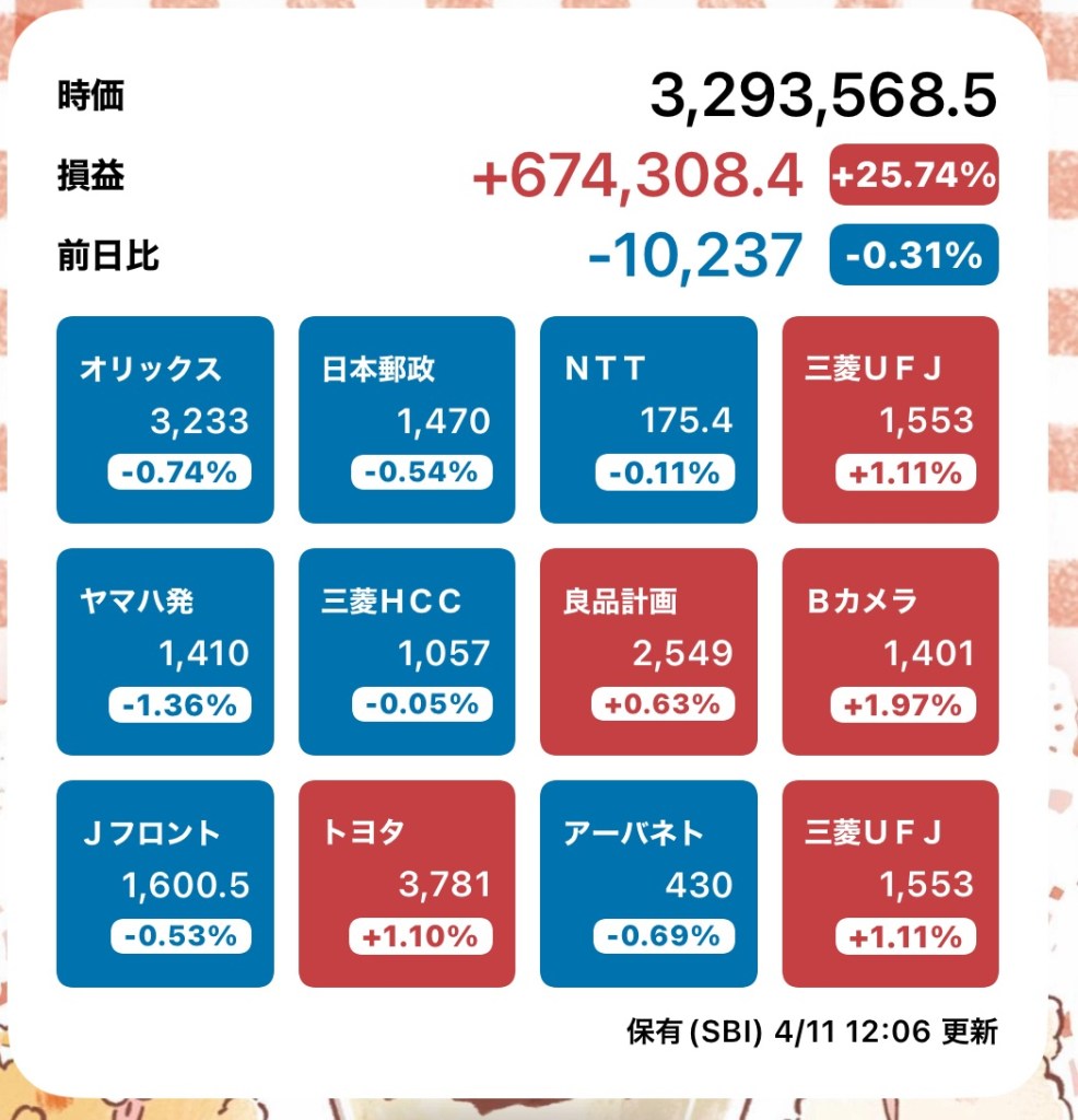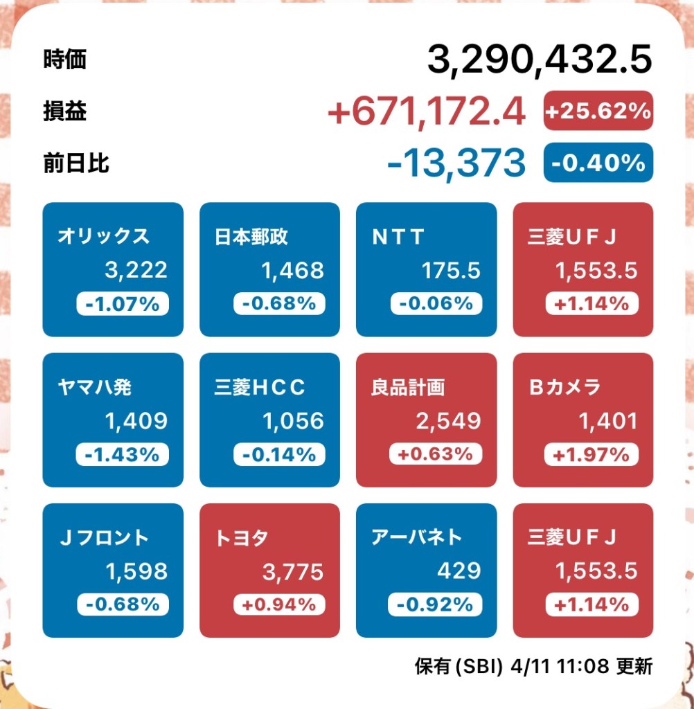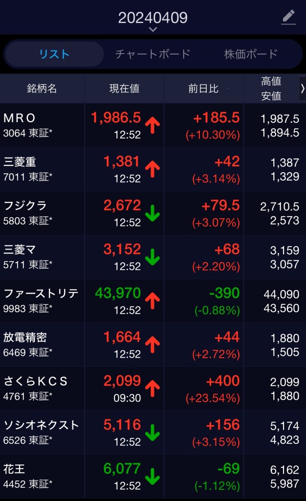 株メモ20240411 投稿者:volumeV62024年4月11日2024年4月11日カテゴリー:未分類タグ:#投資 #株 #決算日 #株主 #株主優待 #SBI証券 日経先物下がったからフジクラ朝一売ったら 爆上がってた…買い戻した方がいいかな。 先物マイナスでも上がるんだね… 明日SQなんですが、下がるの? 朝一はこうだった ソシオっ!!! フジクラ!!なんで上がるっ! 日経下がってたのにーーー! 刺さらんかった! 今日の狙い目 真っ赤になってるっ! 共有: X で共有 (新しいウィンドウで開きます) X Facebook で共有 (新しいウィンドウで開きます) Facebook いいね 読み込み中…