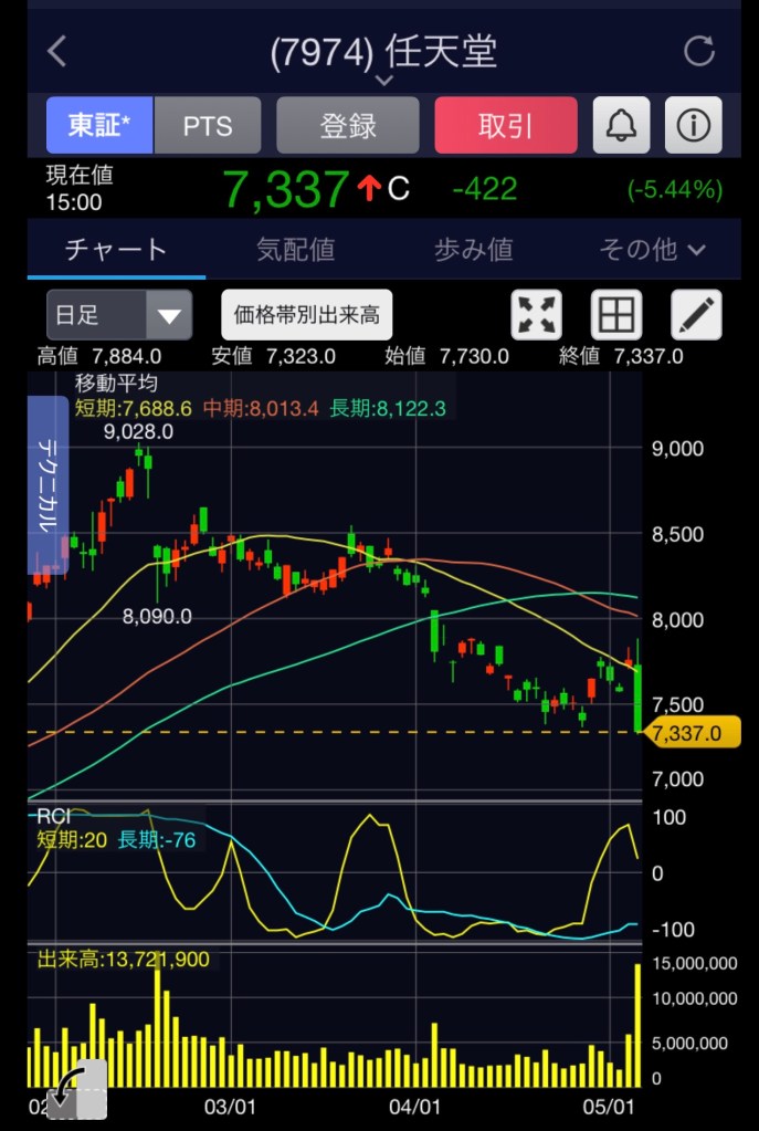 昨日の任天堂はなんとか-5959円で損切りできてた💦