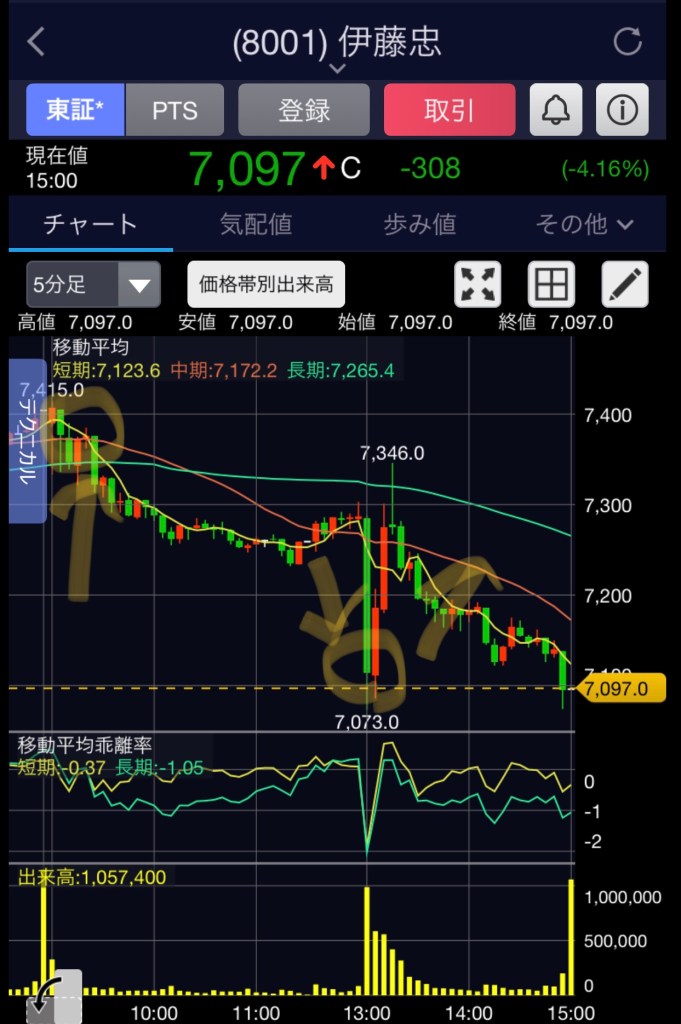 伊藤忠の13時の暴落は本当酷かった。
