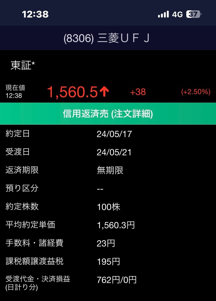 株メモ20240517 投稿者:volumeV62024年5月17日2024年5月17日カテゴリー:株タグ:#投資 #株 #決算日 #株主 #株主優待 #SBI証券 円安に変調の兆し? #モーサテ 今日のデイは、レーティング↑が出た 三井住友とフジクラ。 そして引き続き昨日からのUFJ。 結果 なんとか全部➕! うち、三井さんは昨日の追証返済! やたー🙌 マイナスにならなくてよかった😅 なかなかの益😊 今日はもう買わないぞー。 共有: X で共有 (新しいウィンドウで開きます) X Facebook で共有 (新しいウィンドウで開きます) Facebook いいね 読み込み中…