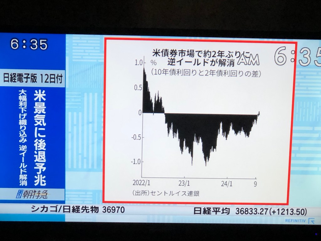 株メモ20240913 投稿者:volumeV62024年9月13日カテゴリー:株タグ:#投資 #株 #決算日 #株主 #株主優待 #SBI証券 今日のモーサテ。 米国逆イールド解消=景気後退の予兆? 都心の空室率減ってきた?=経済が活発になってきた? コレって逆三尊?? トレンド変換に見える…? 共有: X で共有 (新しいウィンドウで開きます) X Facebook で共有 (新しいウィンドウで開きます) Facebook いいね 読み込み中…