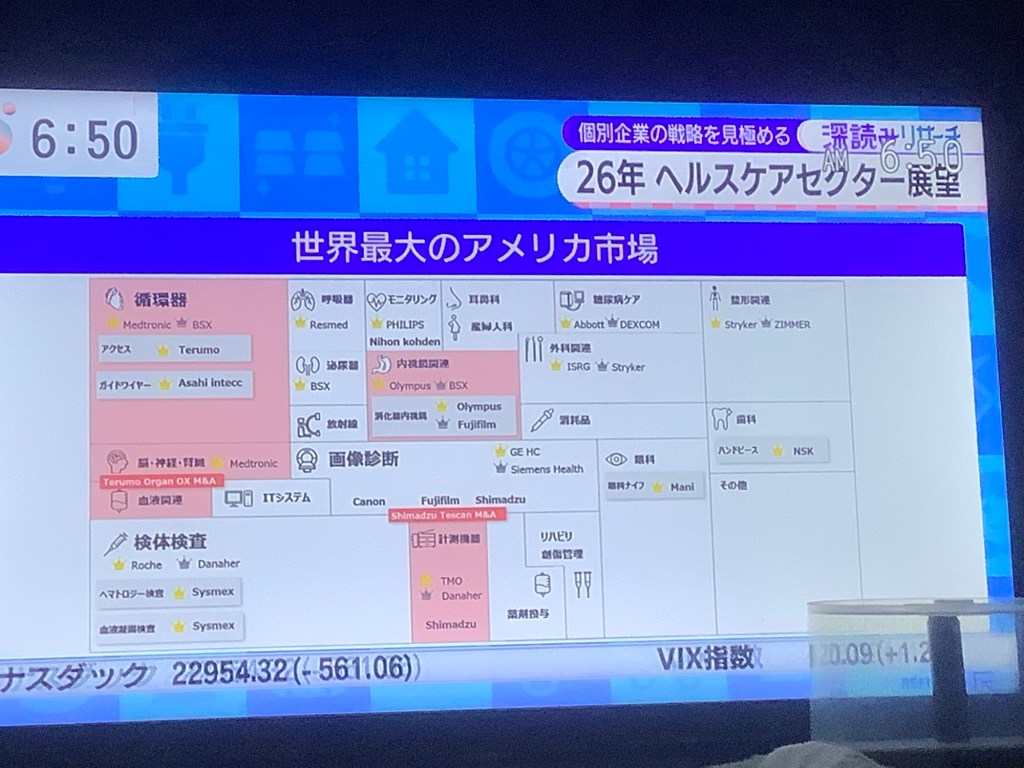 市場でよく出てくる島津製作所の名前が、ヘルスケア領域でよく出てくる。要注目。