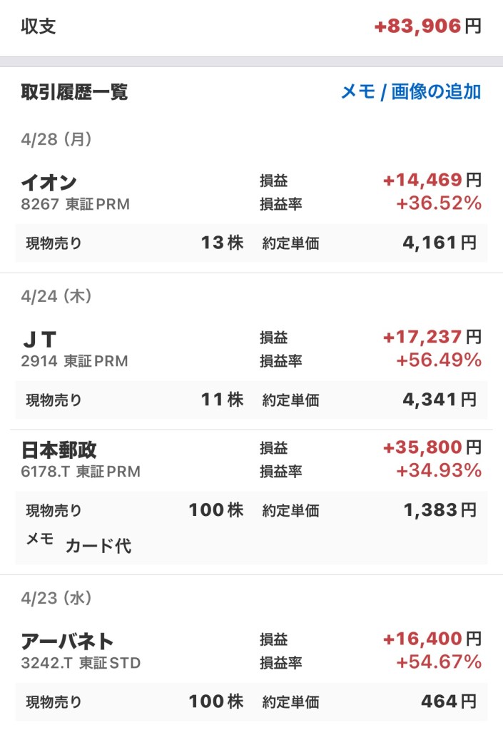 5万円の為とはいえ、4月に取り崩した分が以下。