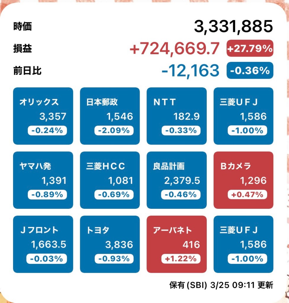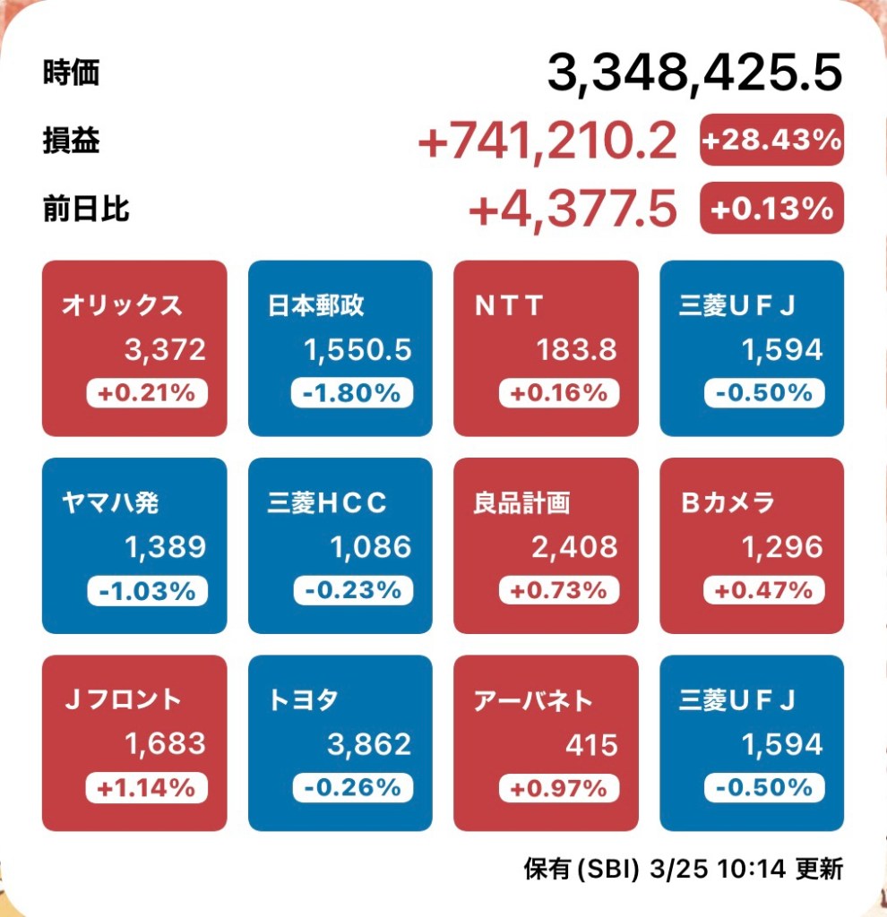 まあ、全体的に強かったので、また最高額に近づきました。これでも、先日三菱ケミカルとか売ったからなぁ。