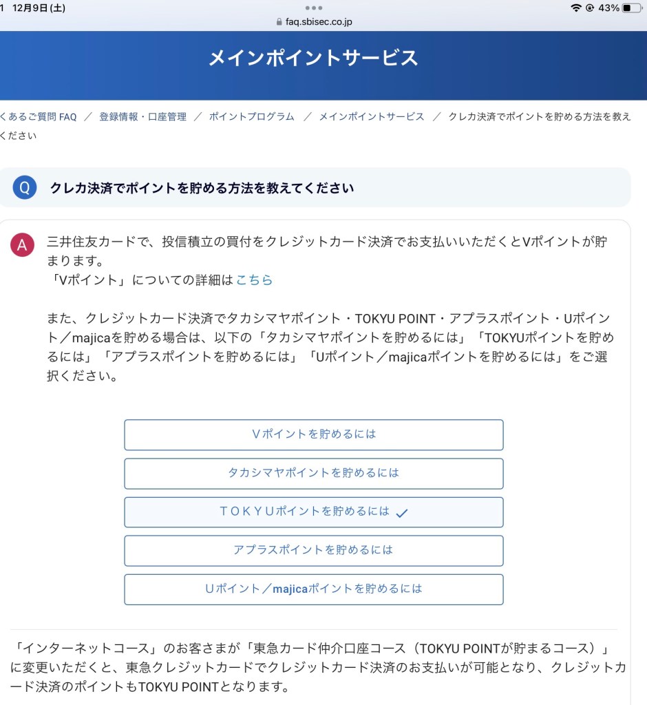 5種類も積立に利用できたんですね…知らなかった。しかも、すでに持っているカードがあるやないかっ!?もう積立始められたやないかっ!三井住友カードないから積み立てできない、の言い訳ができなくなりましたw