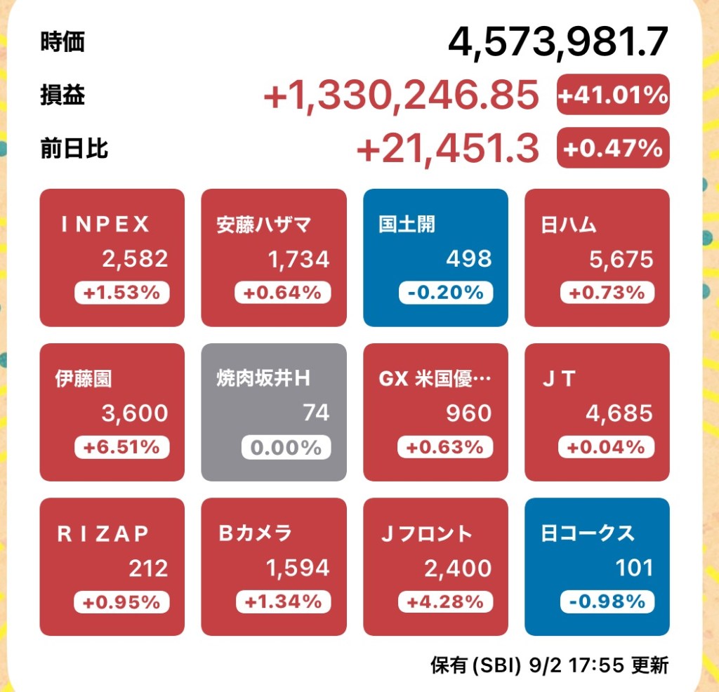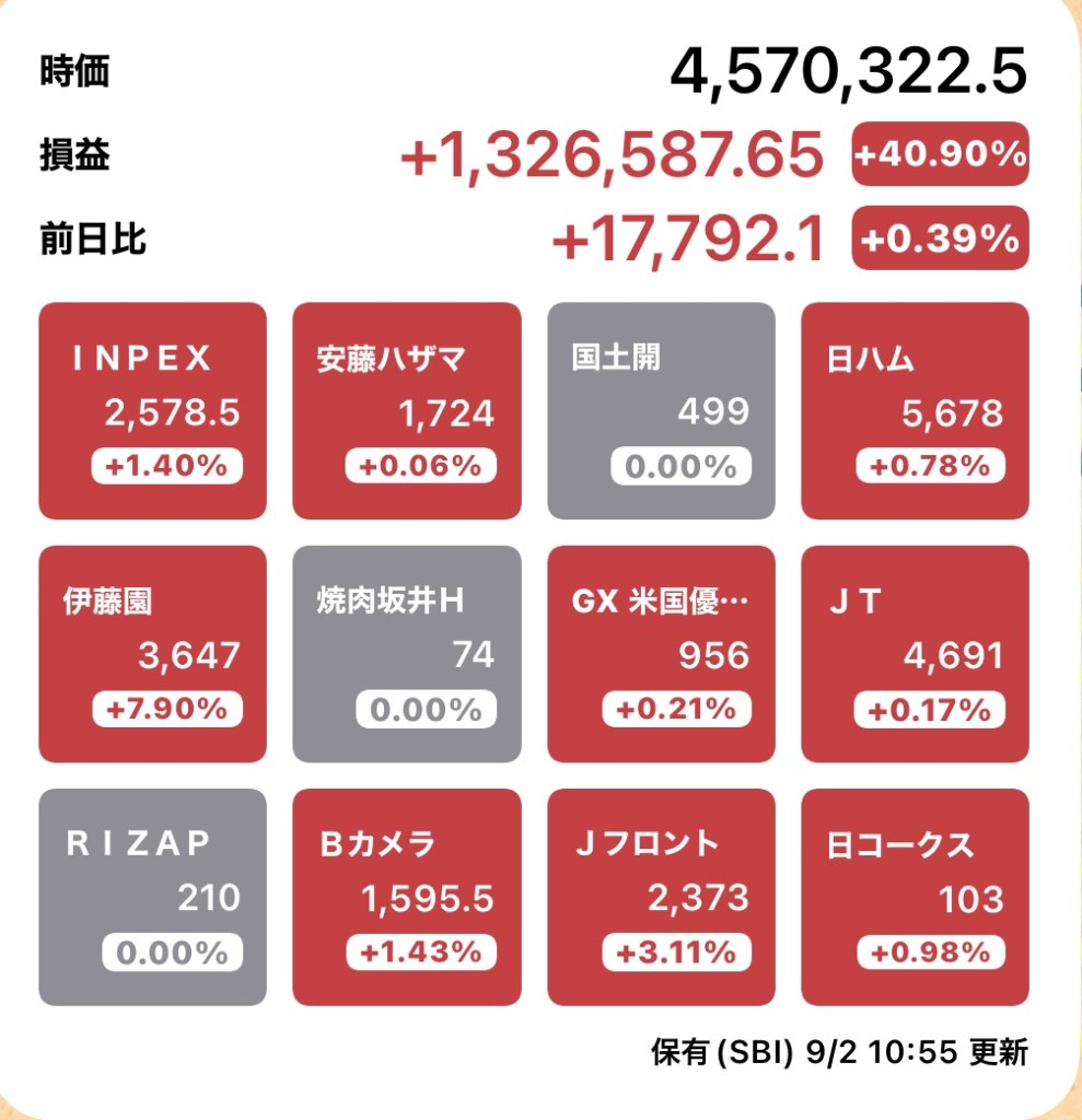 昨日の晩、旧NISA見てて、コークスがやっとプラ転したから売っておきます。